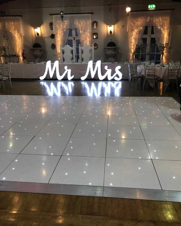Enhance your wedding day with our large light-up Mr. and Mrs. signs. Contact us today to book your signs and make your celebration truly unforgettable.